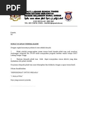 P i m p i n a n c a b a n g. Aku tahu, takkan mampu ku balas . Kumpulan contoh surat ucapan terimakasih untuk guru, teman, dosen, kakak kelas, kepada donatur, sponsor atas bantuan dan kerjasamanya. Jika tidak sempat menyampaikan secara langsung, ada . Contoh surat ucapan terima kasih (thanking letter) dalam bahasa inggris terbaru beserta artinya.